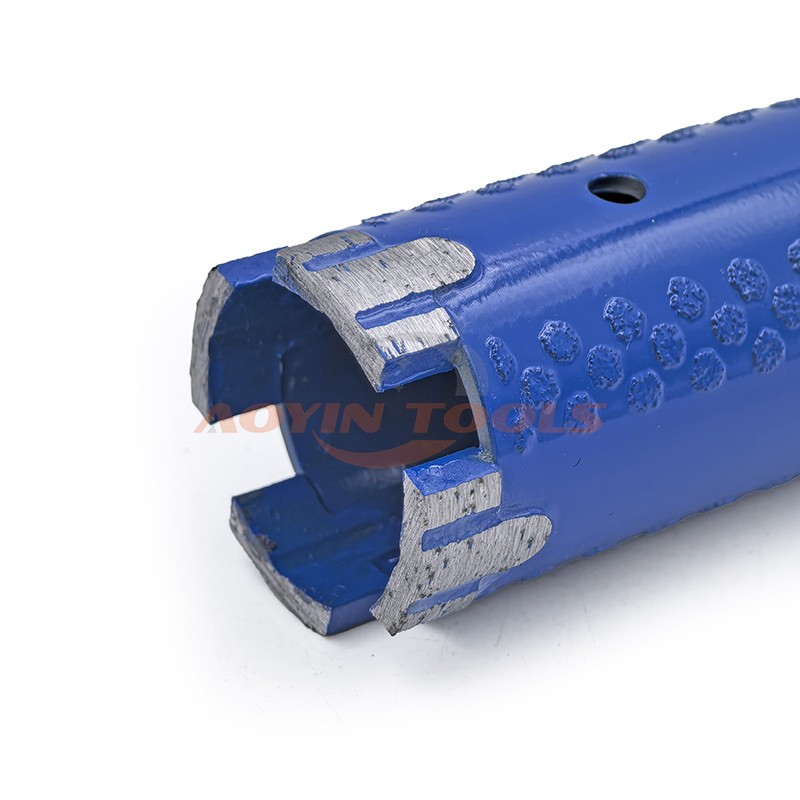Projetada para versatilidade, esta broca de 1-3/8" (35 mm) possui uma rosca universal de 5/8"-11 para se adaptar à maioria das brocas padrão. Sua dupla funcionalidade seca/molhada funciona em qualquer condição do local de trabalho, enquanto o corpo de aço com segmento T evita quebras durante o uso manual — essencial para a segurança e a produtividade. A combinação de diamantes laterais e segmentos turbo garante cortes limpos e uniformes com redução de lascas.