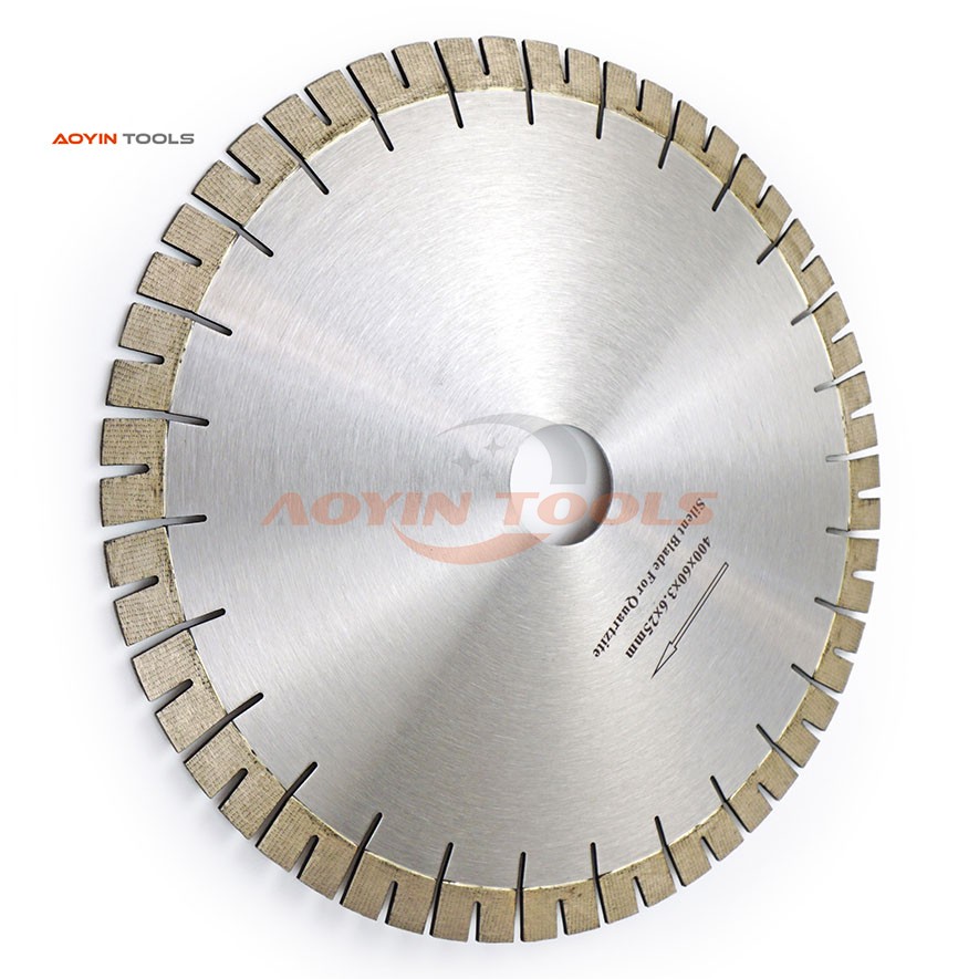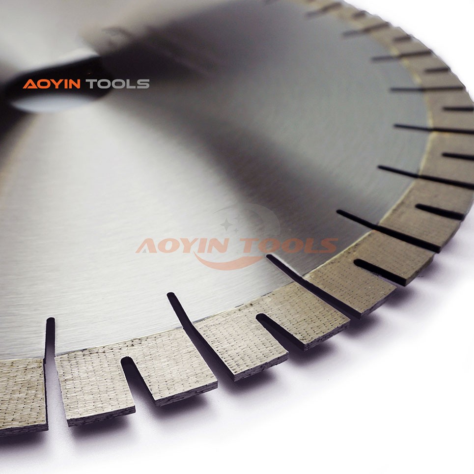 AOYIN Lâmina de serra de diamante silenciosa Apresenta tecnologia avançada de segmento Arix para garantir distribuição consistente de diamantes, proporcionando maior eficiência de corte e maior durabilidade da lâmina. Projetada para aplicações em granito, mármore e quartzo, esta lâmina oferece: