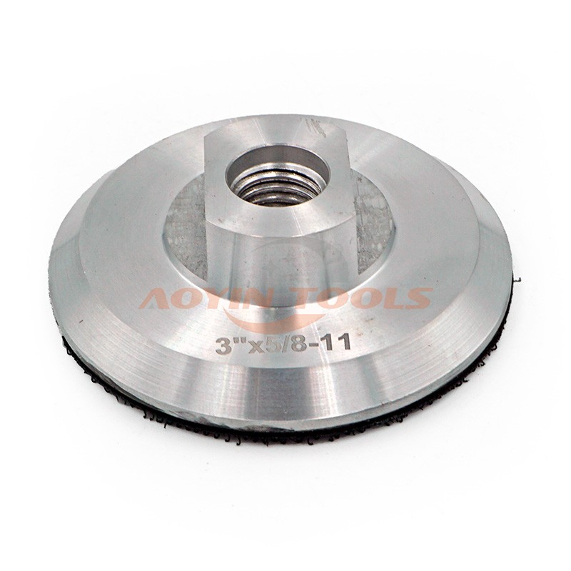These Aluminum Backup Pads act as the critical link between diamond polishing pads and handheld polishers/angle grinders.Crafted from lightweight yet rigid aluminum, they’re perfectly balanced for smooth operation,with a premium hook-and-loop backing and heat-resistant glue that prevents Velcro from peeling—even under dry grinding heat where other pads fail. Ideal for both wet and dry polishing of marble,granite and engineered stone.