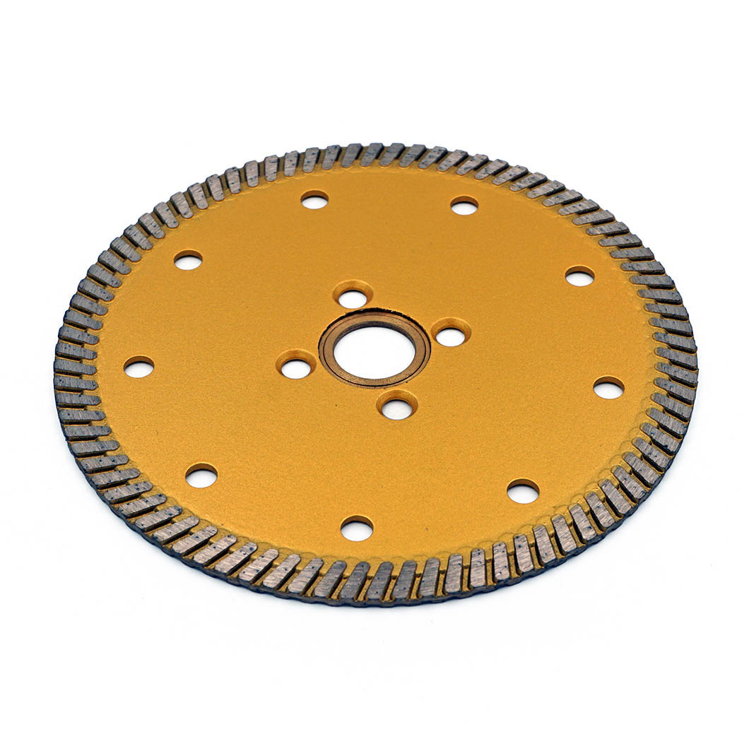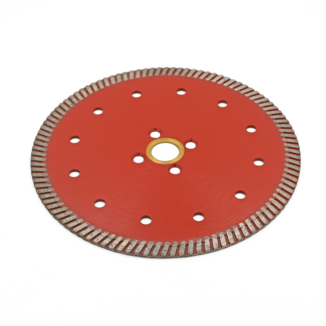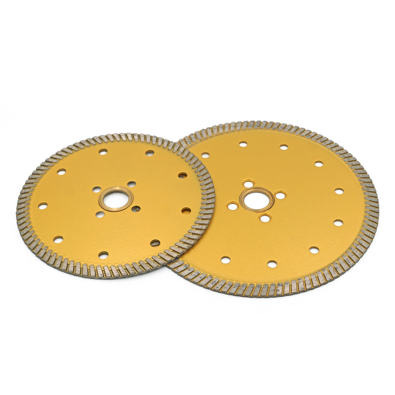 2. Borda Segmentada Turbo: O design segmentado turbo aumenta a velocidade de corte e garante resultados de corte limpos e sem lascas, mesmo ao lidar com materiais duros como granito e mármore.