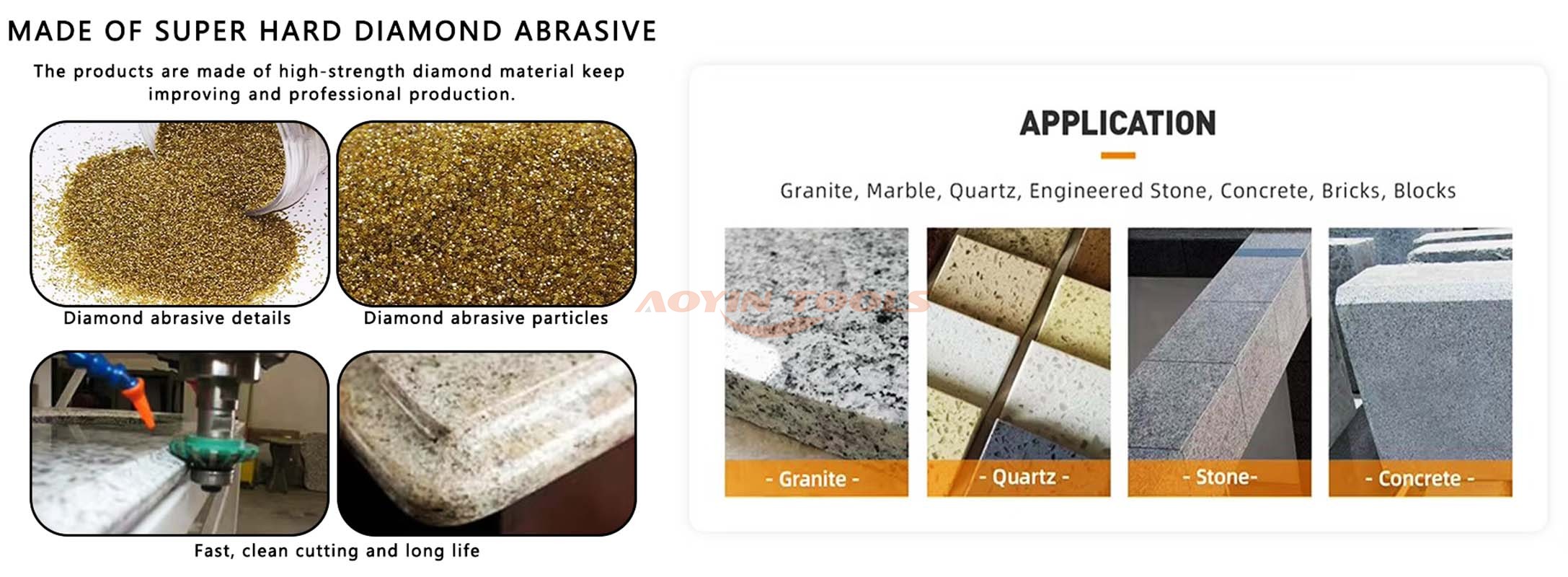 R: É adequado para granito, mármore, concreto e outros materiais de pedra semelhantes.