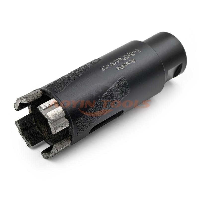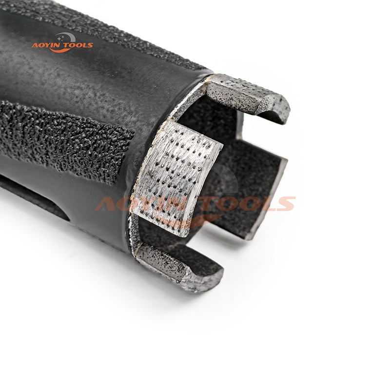 A broca de núcleo tipo turbo com proteção lateral soldada a vácuo é amplamente utilizada na indústria de pedras para operações de perfuração. É adequada para perfuração úmida e seca de diversos níveis de dureza de pedras naturais, incluindo granito e mármore, bem como pedras artificiais. Esta broca de núcleo é essencial para fabricantes, instaladores e profissionais envolvidos em projetos de construção e reforma de pedras.