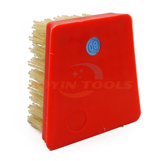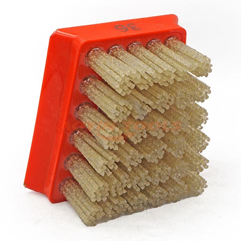 R: Os diamantes são unidos em fios impregnados de resina. Essa matriz de resina retém com segurança uma alta densidade de pó de diamante, permitindo desgaste consistente e abrasão eficaz durante toda a vida útil da escova.